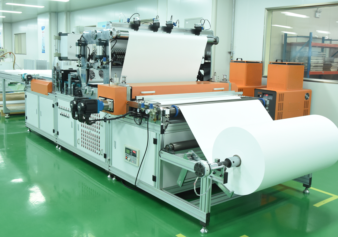 公司購(gòu)進(jìn)韓國(guó)三星全自動(dòng)無(wú)隔板空氣過(guò)濾器折紙生產(chǎn)線,確保產(chǎn)品質(zhì)量符合GB/T13554-2020《高效空氣過(guò)濾器》、GB/T14295-2019《空氣過(guò)濾器》。該機(jī)器1、采用機(jī)、電、氣一體化全自動(dòng)控制,生產(chǎn)效率高,運(yùn)行穩(wěn)定可靠;2、操作盤采用12寸以上電腦控制界面,清晰、直觀、操作方便;3、上料用氣脹軸,并有張力制動(dòng)系統(tǒng),可自動(dòng)控制來(lái)料的張力;4、機(jī)器帶有分切修邊裝置;5、機(jī)器折高在控制界面上任意調(diào)節(jié),無(wú)需更換滾筒,伺服控制系統(tǒng)可保證折紙的平整度;6、涂膠的連續(xù)、斷續(xù)、雙面、單面、自動(dòng)、手動(dòng)、交叉等七項(xiàng)功能可方便選擇;7、每一個(gè)膠嘴有一個(gè)獨(dú)立開(kāi)關(guān),可以在控制界面上自由開(kāi)關(guān);8、系統(tǒng)速度通過(guò)電腦能自動(dòng)匹配,可方便選擇;9、收波機(jī)構(gòu)折高調(diào)節(jié)及前后移動(dòng),調(diào)整方便可靠;10、輸送機(jī)構(gòu)可通過(guò)電腦調(diào)節(jié)使輸送速度與系統(tǒng)同步;11、使用日本松下的伺服馬達(dá)傳輸系統(tǒng)保證折出來(lái)的紙會(huì)非常的平;12、膠機(jī)的流量和折紙的速度是成正比的,要求折紙速度增加時(shí),膠水的流量也會(huì)一起增加,不用人為再去控制膠量的大?。?3、要求在不同的生產(chǎn)速度下,膠水的干濕程度可以通過(guò)操作系統(tǒng)來(lái)控制;14、折紙與輸送過(guò)程具有同步性。